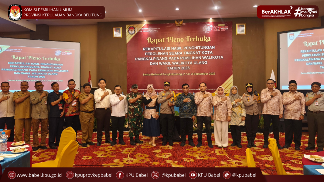 KPU BABEL HADIRI REKAPITULASI PENGHITUNGAN PEROLEHAN SUARA PEMILIHAN WALIKOTA DAN WAKIL WALIKOTA PANGKALPINANG ULANG TAHUN 2025