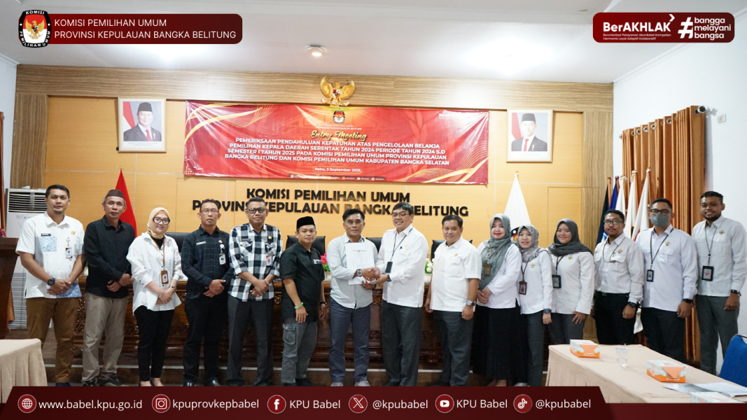 #SeperadikPemilih KPU Provinsi Kepulauan Bangka Belitung bersama KPU Kabupaten Bangka Selatan mengikuti Entry Meeting Pemeriksaan Pendahuluan Kepatuhan atas Pengelolaan Belanja Pilkada Serentak Tahun 2024 Periode Tahun 2024 sampai dengan Semester I Tahun 2025 bersama Badan Pemeriksa Keuangan (BPK). (3/9)