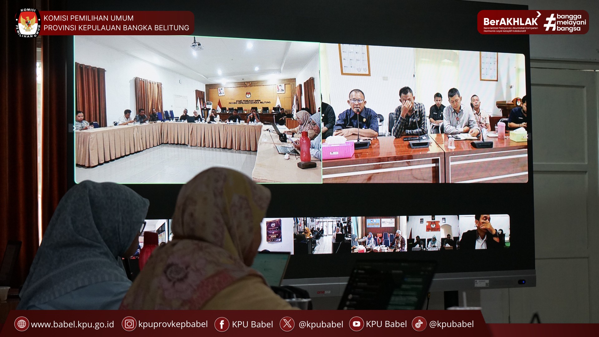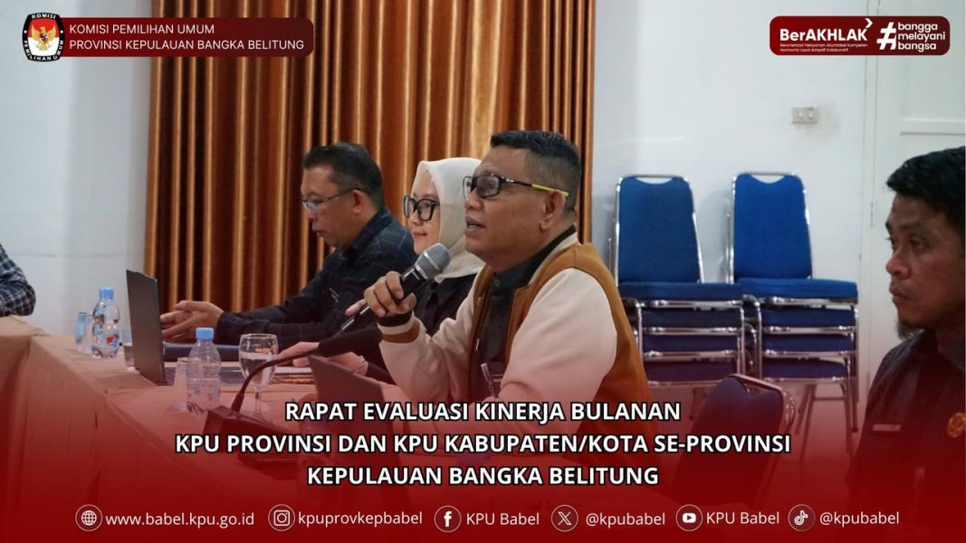 #SeperadikPemilih Komisi Pemilihan Umum (KPU) Provinsi Kepulauan Bangka Belitung menggelar Rapat Evaluasi Kinerja Bulanan yang diikuti jajaran sekretariat KPU provinsi serta kabupaten/kota se-Babel secara hybrid. Rapat dipimpin langsung oleh Sekretaris KPU Babel, Muchtaruddin, dengan kehadiran Kabag dan Kasubbag secara luring, sementara jajaran sekretariat kabupaten/kota berpartisipasi melalui Zoom Meeting. (09/09)