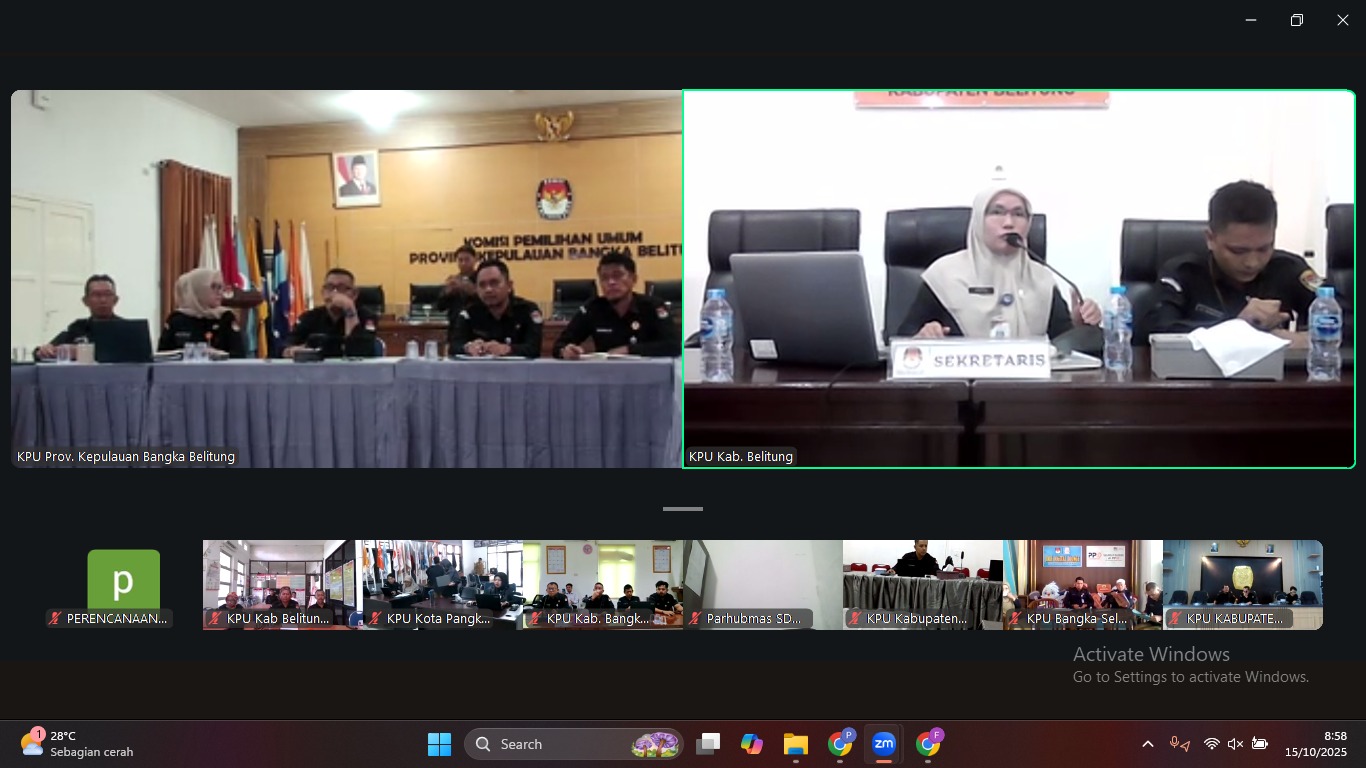 #SeperadikPemilih KPU Provinsi Kepulauan Bangka Belitung menggelar Rapat Evaluasi Kinerja Bulanan bersama KPU Kabupaten/Kota se-Provinsi Kepulauan Bangka Belitung secara daring melalui Zoom Meeting, Rabu (15/10/2025).