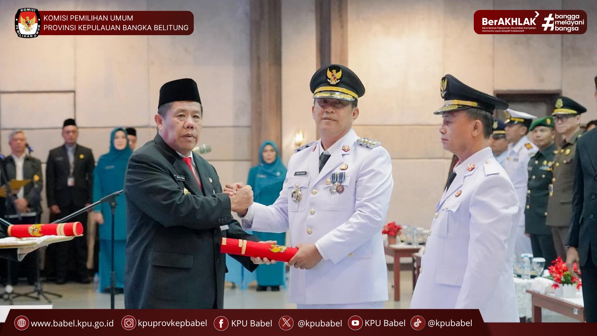 #SeperadikPemilih Ketua KPU Provinsi Kepulauan Bangka Belitung, Husin, menghadiri Pelantikan dan Pengucapan Sumpah Jabatan Bupati dan Wakil Bupati Bangka, serta Pelantikan Ketua Tim Penggerak PKK Kabupaten Bangka dan Pengukuhan Ketua Pembina Posyandu Kabupaten Bangka. Acara digelar di Ruang Rapat Pasir Padi, Lantai III Kantor Gubernur Kepulauan Bangka Belitung, Senin (5/11/2025).