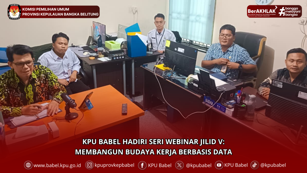 Dengan keikutsertaan dalam Seri Webinar Jilid V ini, KPU Babel berupaya mendukung terwujudnya KPU yang modern dan berbasis data, sehingga penyelenggaraan pemilu di Provinsi Kepulauan Bangka Belitung dapat semakin berkualitas dan adaptif terhadap perkembangan teknologi.
