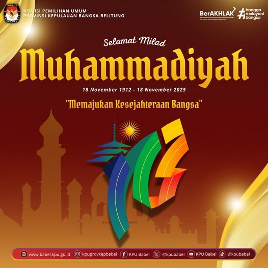 #SeperadikPemilih KPU Provinsi Kepulauan Bangka Belitung mengucapkan Selamat Milad ke-113 Muhammadiyah.