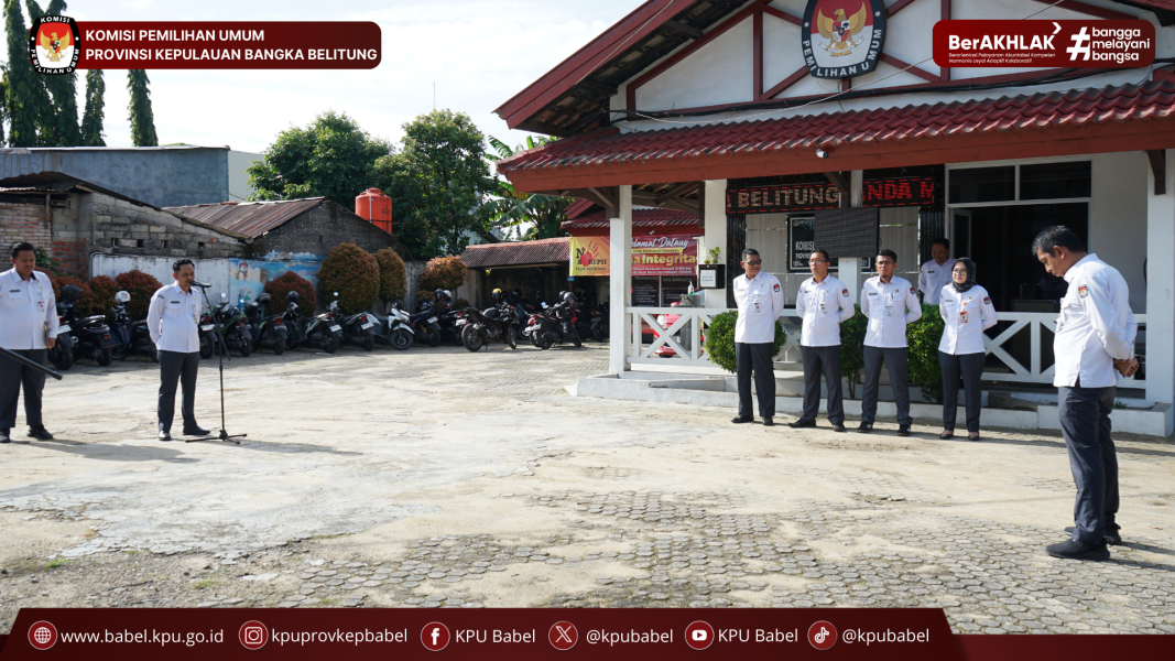 #SeperadikPemilih KPU Provinsi Kepulauan Bangka Belitung melaksanakan apel pagi rutin pada Senin, 24 November 2025, bertempat di halaman Kantor KPU Babel. Kegiatan ini diikuti oleh Sekretaris, Kepala Bagian serta seluruh jajaran sekretariat KPU Babel sebagai bagian dari upaya menegakkan disiplin dan meningkatkan koordinasi internal.