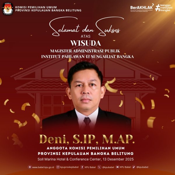 #SeperadikPemilih, Komisi Pemilihan Umum Provinsi Kepulauan Bangka Belitung mengucapkan Selamat dan Sukses atas Wisuda Magister Administrasi Publik Institut Pahlawan 12 Sungailiat Bangka, Bapak Deni, S.IP., M.AP.