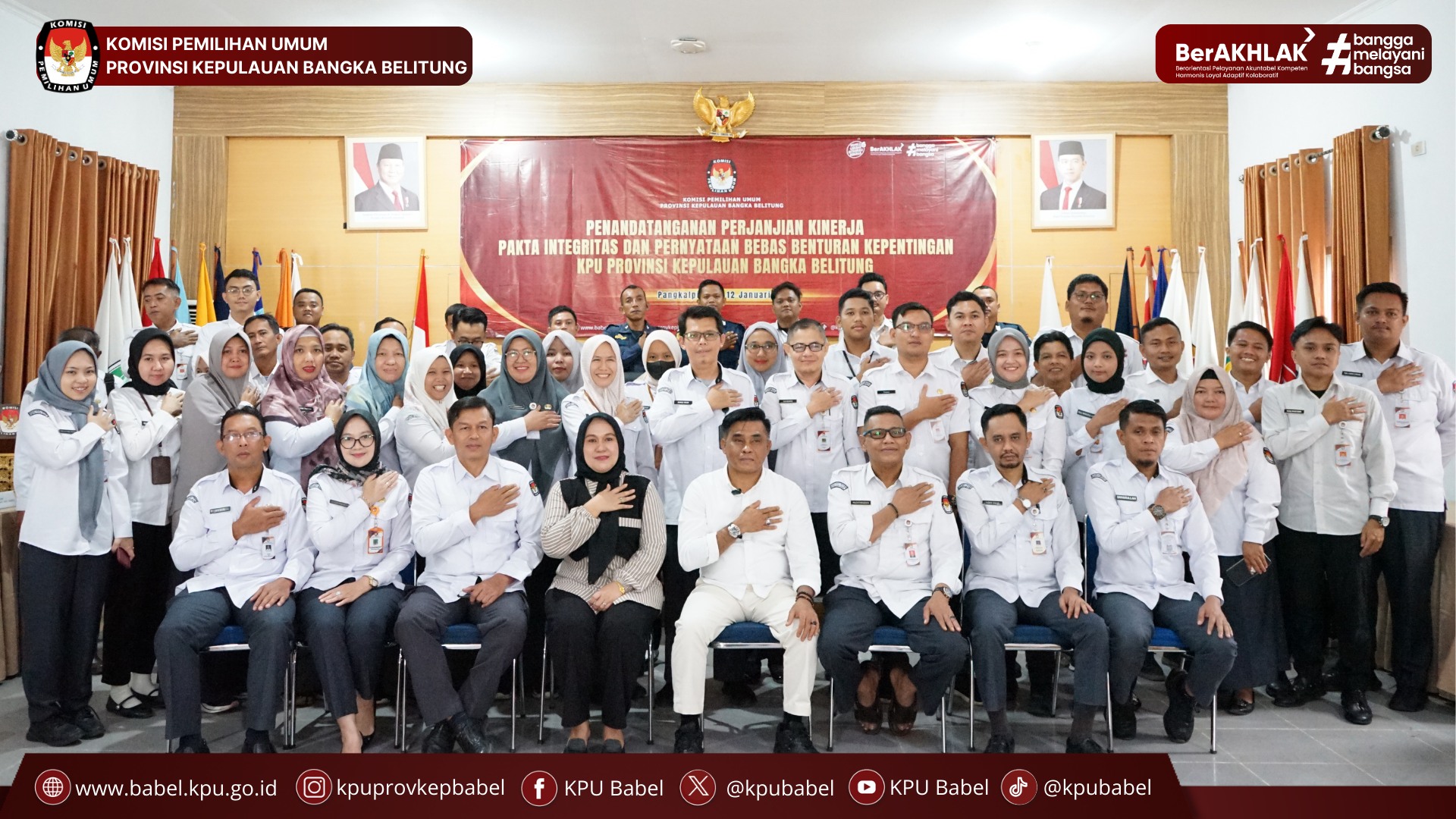 #SeperadikPemilih “Penandatanganan perjanjian kinerja ini bukan sekadar formalitas administrasi, tetapi merupakan komitmen bersama seluruh jajaran KPU Provinsi Kepulauan Bangka Belitung untuk bekerja profesional, berintegritas, dan bertanggung jawab dalam menjalankan tugas kelembagaan,” tegas Ketua KPU Babel, Husin, saat memberikan arahan pada Kegiatan Penandatanganan Perjanjian Kinerja Tahun 2026. (12/1)
