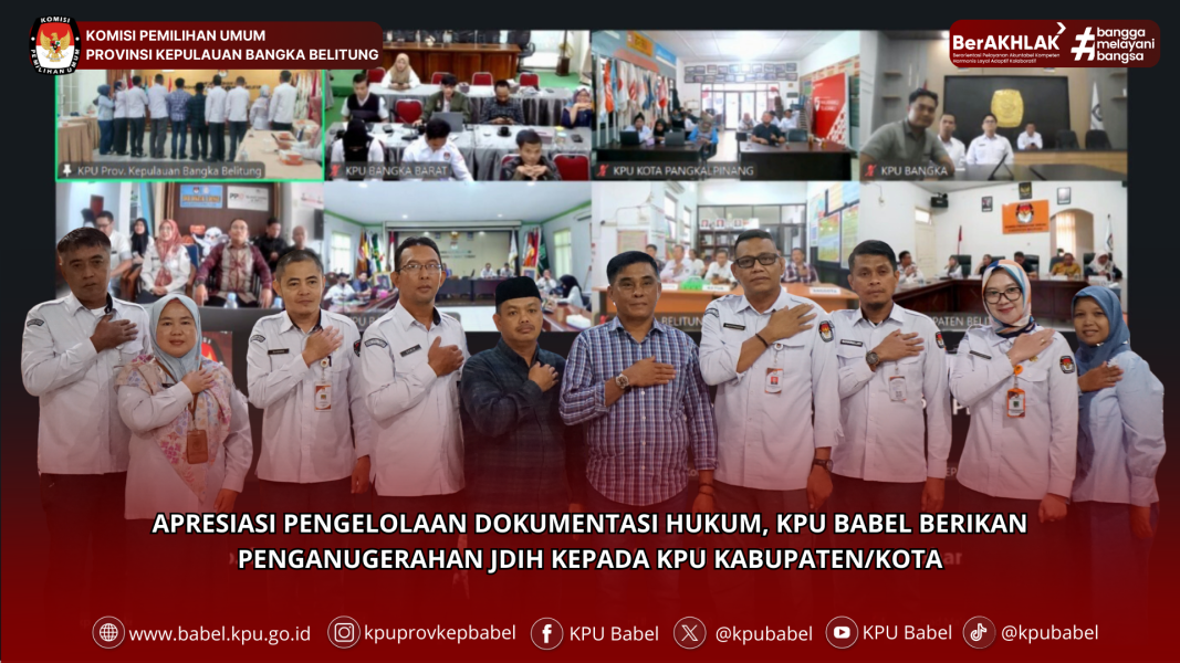 #SeperadikPemilih KPU Provinsi Kepulauan Bangka Belitung menyelenggarakan Penganugerahan Jaringan Dokumentasi dan Informasi Hukum (JDIH) KPU Kabupaten/Kota di Lingkungan KPU Provinsi Kepulauan Bangka Belitung sebagai bentuk apresiasi atas kinerja pengelolaan dokumentasi dan informasi hukum di tingkat kabupaten/kota. (15/1)