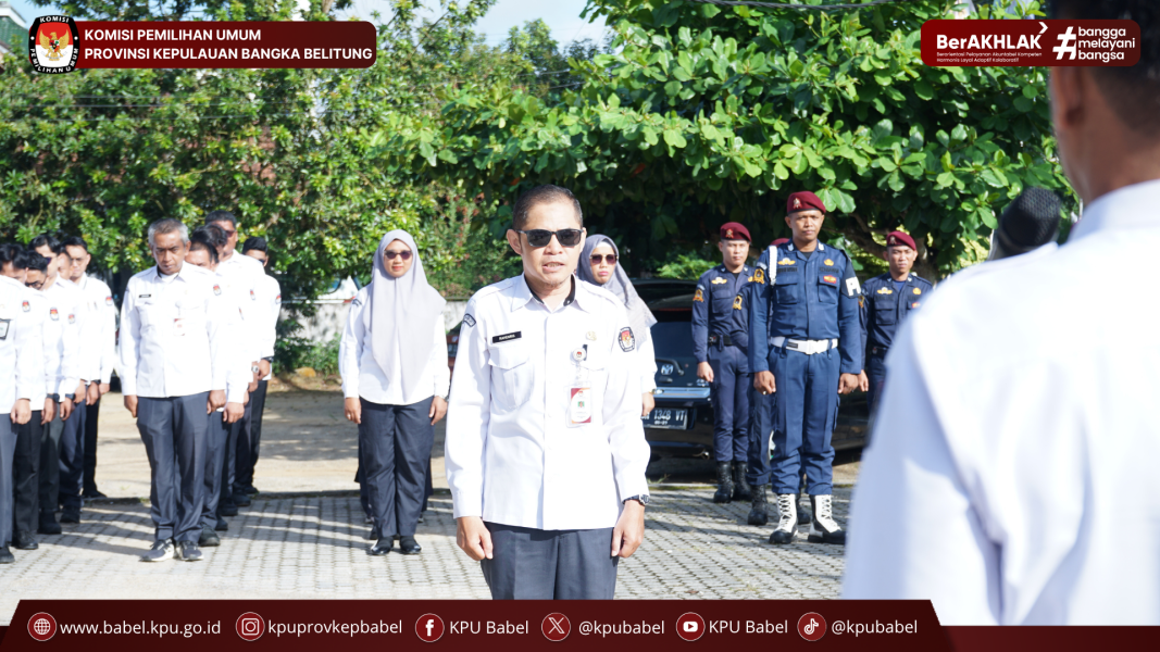 Apel pagi tersebut dipimpin oleh Kepala Bagian Hukum dan Teknis, Saharullah, selaku Pembina Apel, dan diikuti oleh jajaran sekretariat serta pegawai di lingkungan KPU Babel.