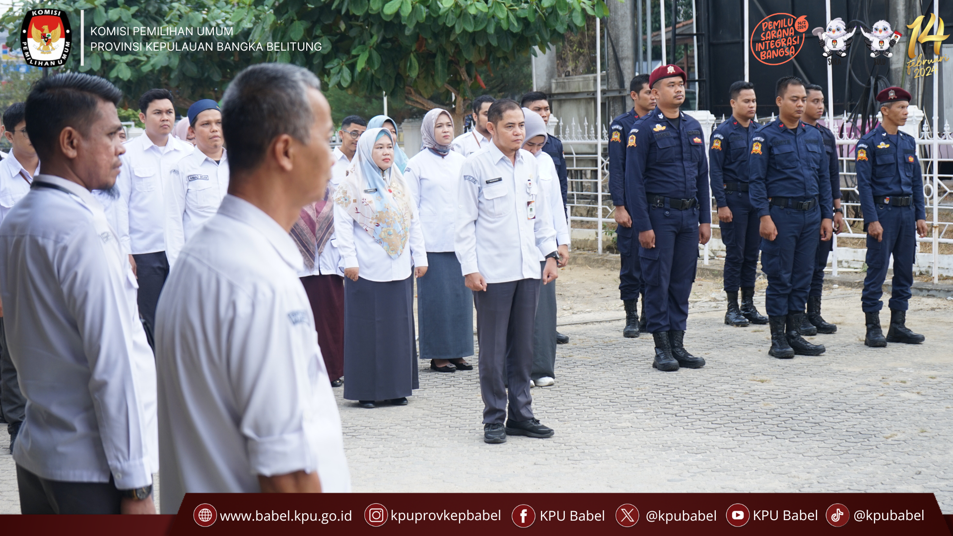 Apel pagi yang diikuti oleh seluruh Jajaran KPU Babel ini dipimpin oleh Anggota KPU Provinsi Kepulauan Bangka Belitung Divisi Hukum Muslim Ansori selaku Pembina Apel. Dalam amanatnya, beliau mengingatkan kepada seluruh peserta apel untuk senantiasa meningkatkan kinerja, loyalitas dalam mewujudkan pemilu yang berintegritas dan bijaklah bermedia sosial.