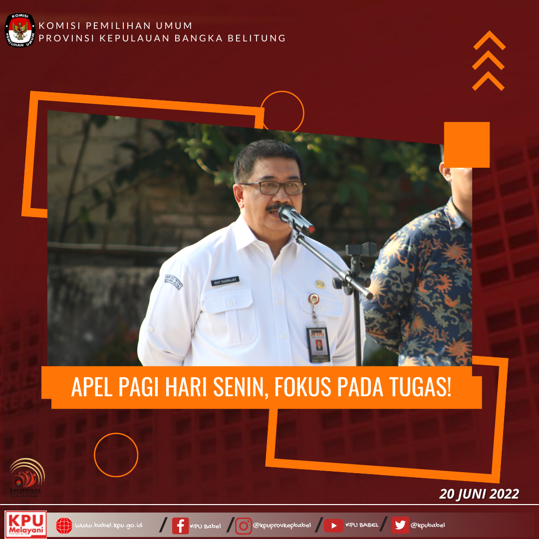 Pangkalpinang, babel.kpu.go.id - KPU Provinsi Kepulauan Bangka Belitung melaksanakan Apel Pagi, yang bertindak sebagai Pembina Apel, Sekretaris KPU Babel, Idat Sudrajat. (20/6)