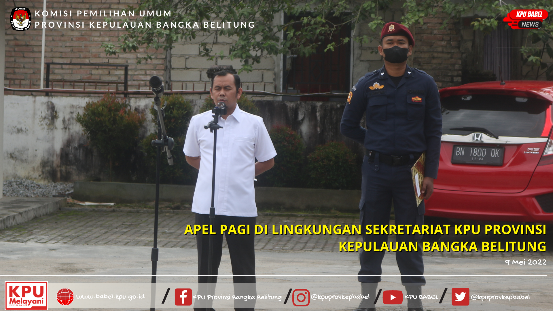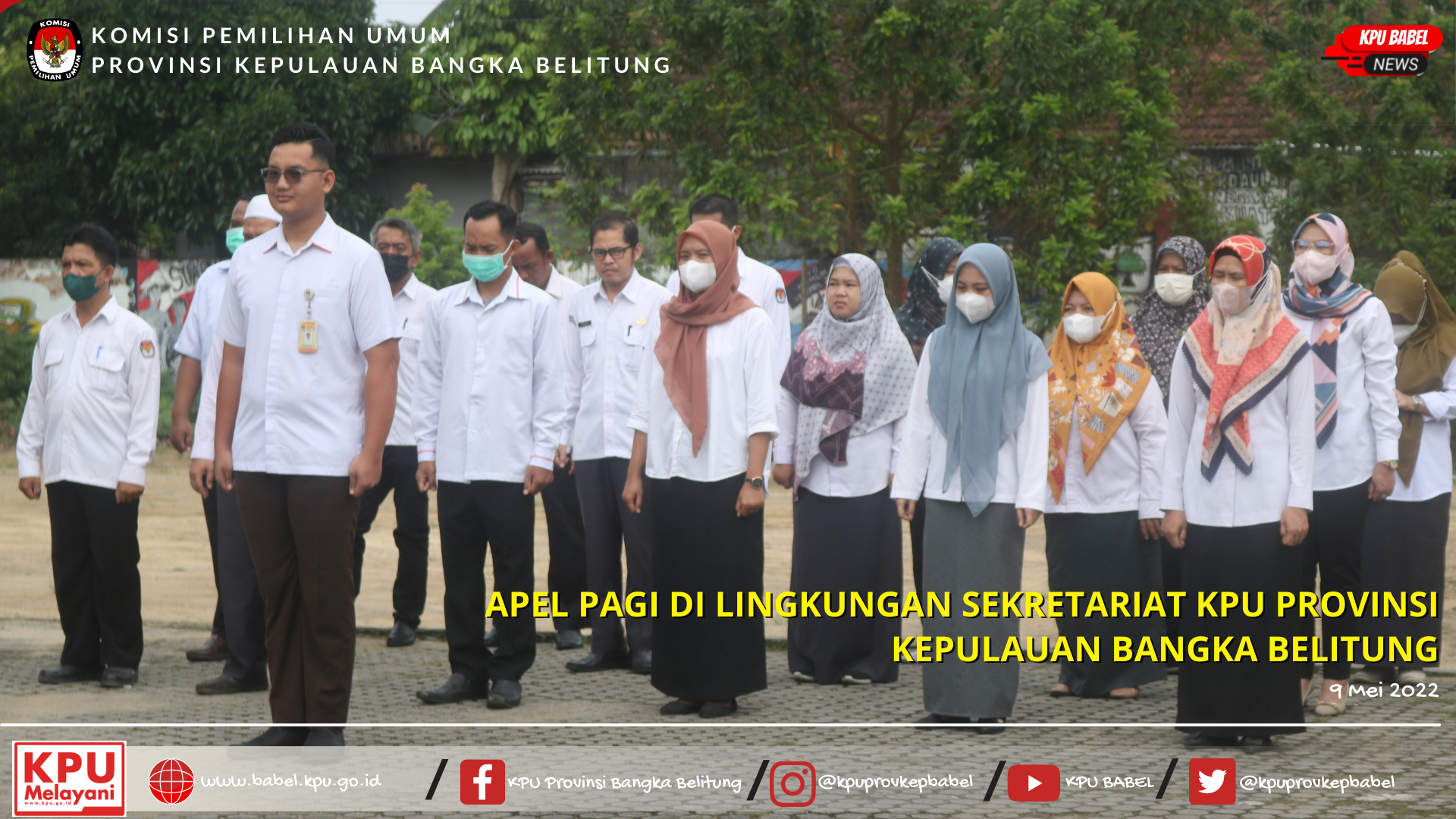 Setelah cuti bersama Idul Fitri, KPU Provinsi Kepulauan Bangka Belitung melaksanakan apel pagi pada Senin (09/05/2022). Apel pagi diikuti oleh Komisioner dan seluruh jajaran Sekretariat KPU Babel. Bertindak sebagai pembina apel pagi adalah Ketua KPU Babel, Davitri.