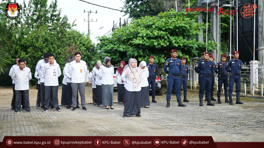 #SeperadikPemilih Dalam rangka memperkuat semangat kerja dan koordinasi internal, Komisi Pemilihan Umum (KPU) Provinsi Kepulauan Bangka Belitung menggelar apel pagi yang dipimpin oleh Kepala Bagian Keuangan, Umum, dan Logistik, Erwin, pada Senin (13/1) di halaman kantor KPU Babel.