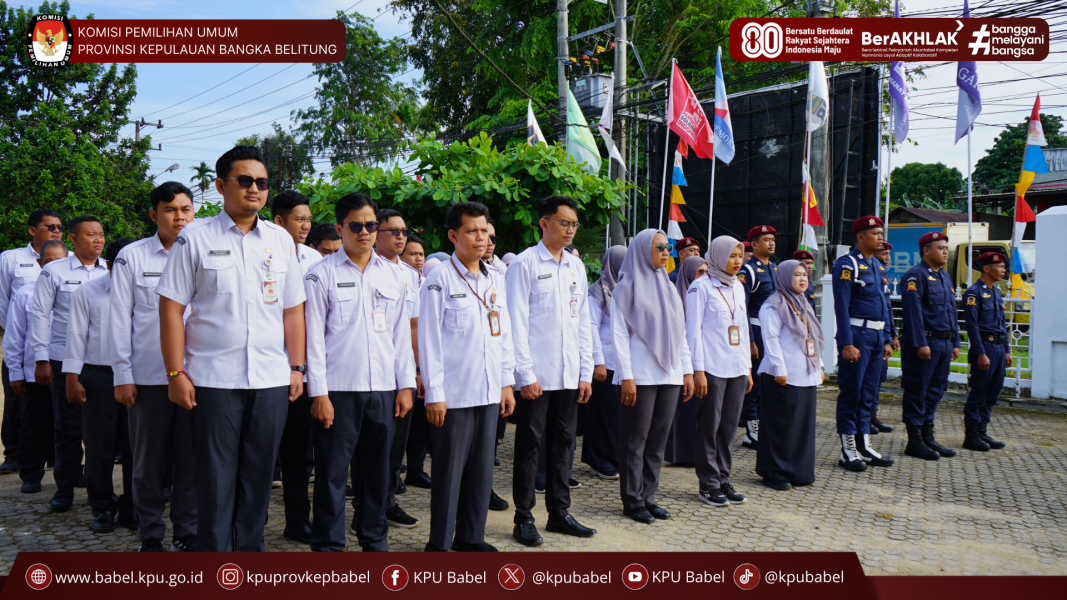 #SeperadikPemilih KPU Provinsi Kepulauan Bangka Belitung melaksanakan apel pagi sebagai bentuk kedisiplinan dan semangat kebersamaan dalam memulai pekan kerja. Apel yang berlangsung di halaman kantor KPU Provinsi ini dipimpin oleh Kepala Bagian Hukum dan Teknis Penyelenggaraan, Saharullah.