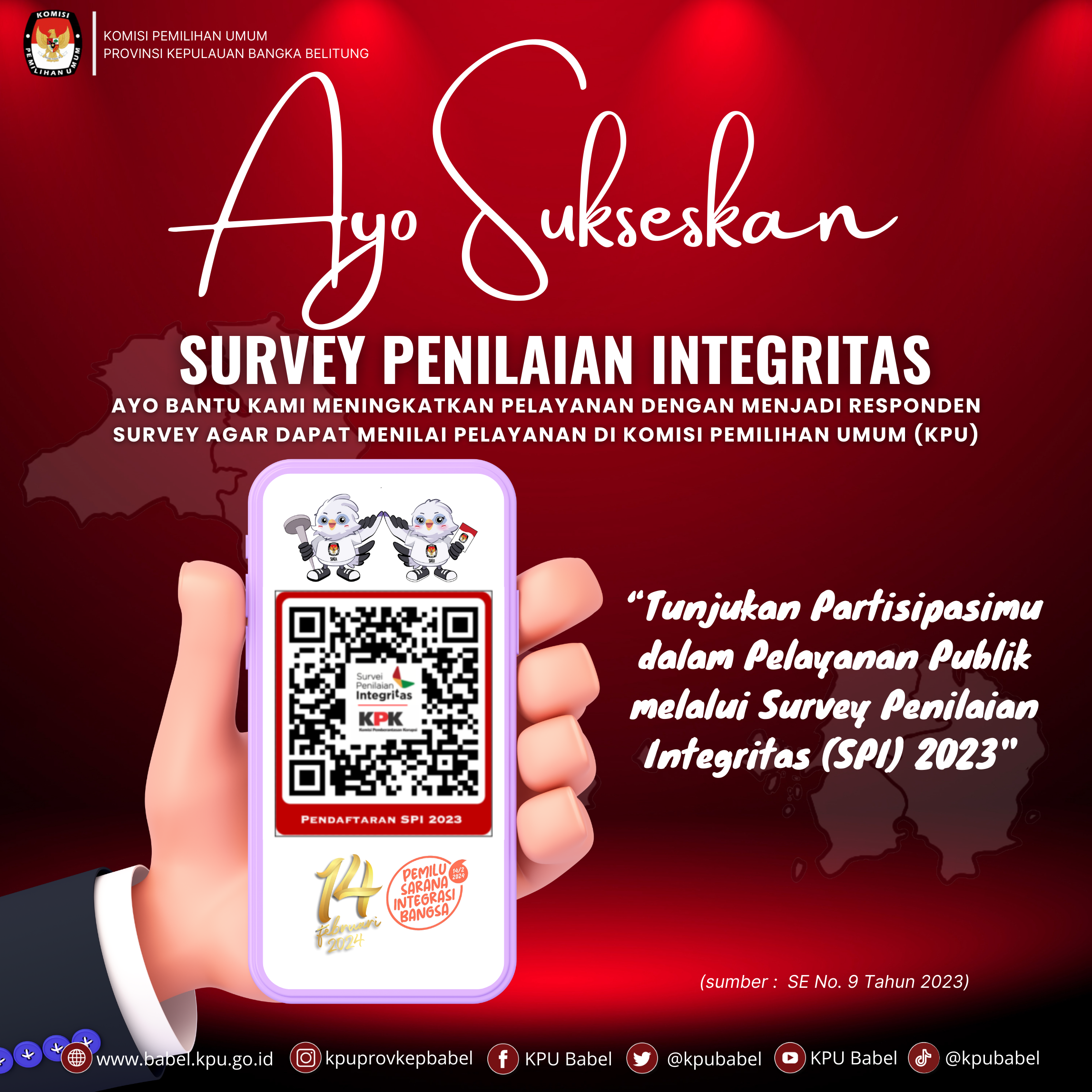 #seperadikpemilih, Mari sukseskan Survei Penilaian Integritas (SPI) 2023 yang diselenggarakan Komisi Pemberantas Korupsi Republik Indonesia (KPK RI).