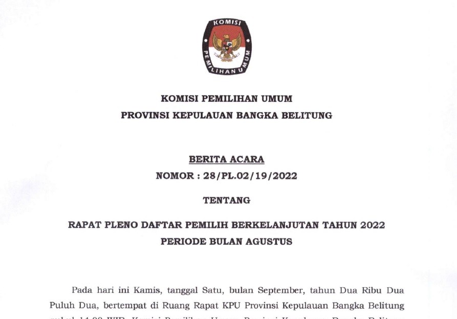 BERITA ACARA DAFTAR PEMILIH BERKELANJUTAN BULAN AGUSTUS 2022