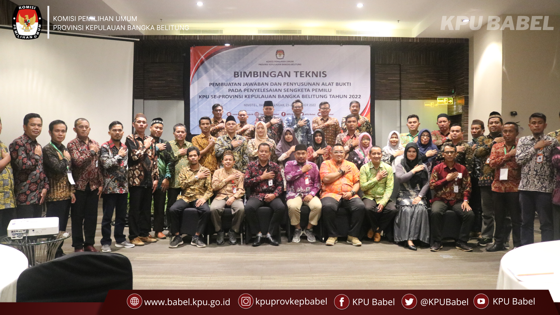 Pada kegiatan ini KPU Provinsi dan KPU Kabupaten/Kota se- Provinsi Kepulauan Bangka Belitung turut menjadi peserta. Bimtek ini diselenggarakan untuk mempersiapkan divisi hukum se-Bangka Belitung untuk menghadapi potensi sengketa pada tahapan pemilu. Selain itu divisi hukum KPU Kabupaten/Kota se-Babel dapat mengidentifikasi permasalahan hukum dan bagaimana mekanisme menghadapi pelanggaran administratif pemilu dan sengketa proses pemilu.
