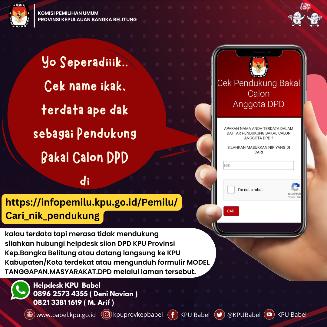 #YoSeperadik Cek name ikak, terdata ape dak sebagai Pendukung Bakal Calon DPD 2024 di https://infopemilu.kpu.go.id/Pemilu/Cari_nik_pendukung