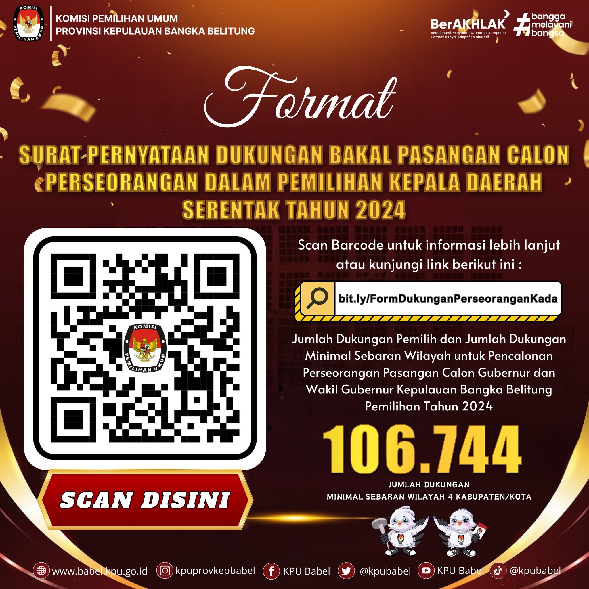 #SeperadikPemilih, berikut kami sampaikan Format Surat Pernyataan Dukungan Bakal Pasangan Calon Perseorangan dalam Pemilihan Kepala Daerah Serentak Tahun 2024.