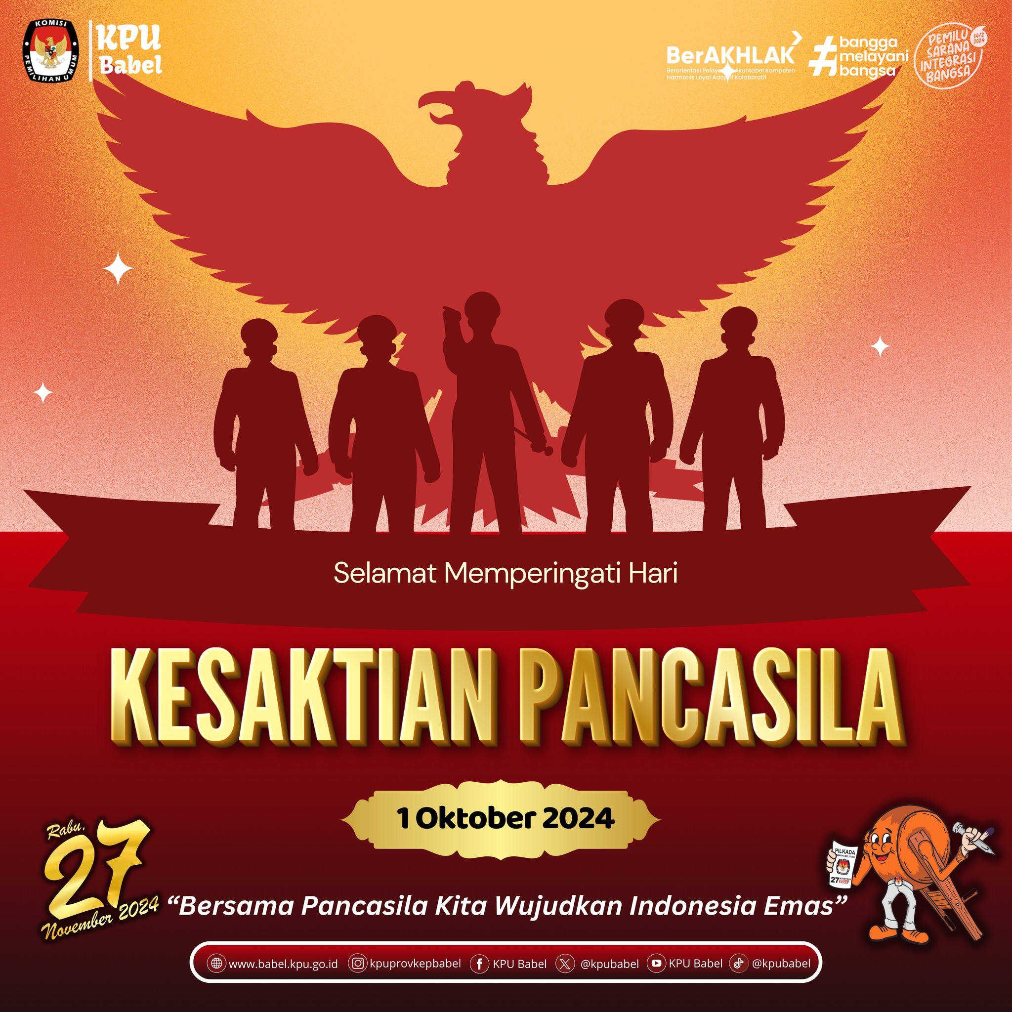 #SeperadikPemilih, KPU Provinsi Kepulauan Bangka Belitung mengucapkan Selamat Hari Kesaktian Pancasila 1 Oktober 2024 “Bersama Pancasila Kita Wujudkan Indonesia Emas”.