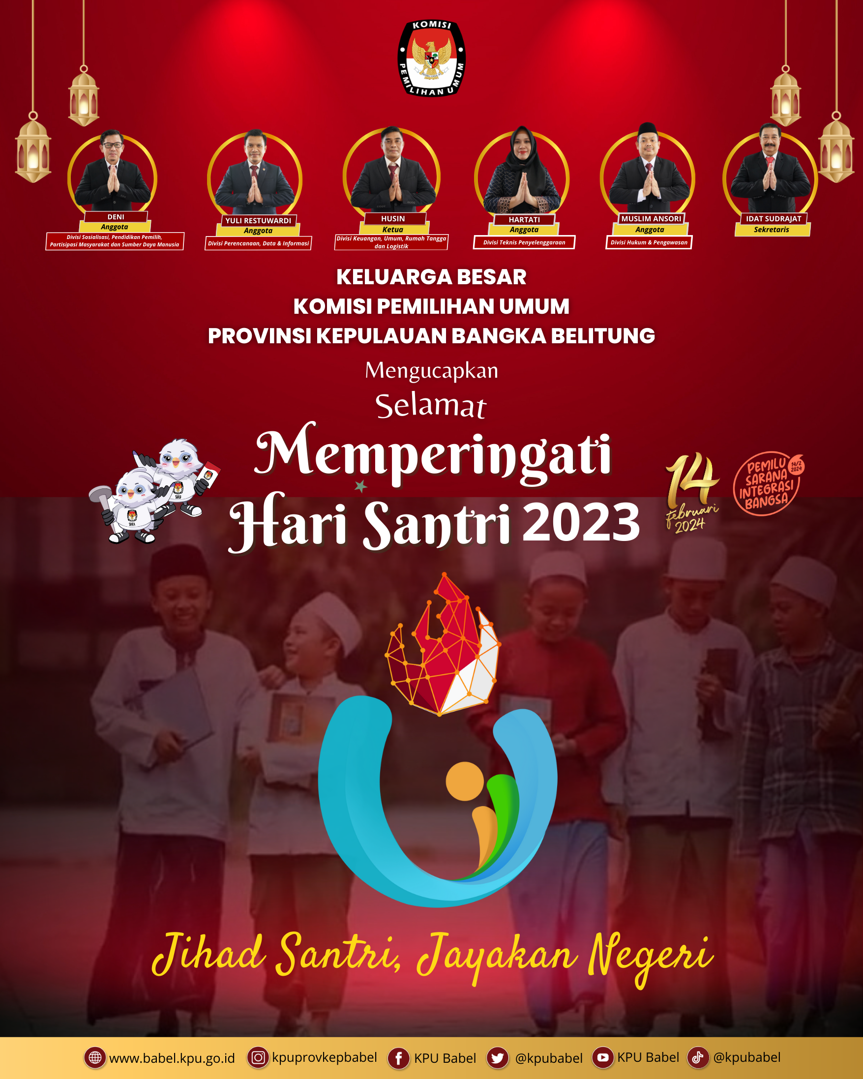 #SeperadikPemilih, Segenap Keluarga Besar KPU Provinsi Kepulauan Bangka Belitung mengucapkan Selamat Hari Santri Nasional Tahun 2023.