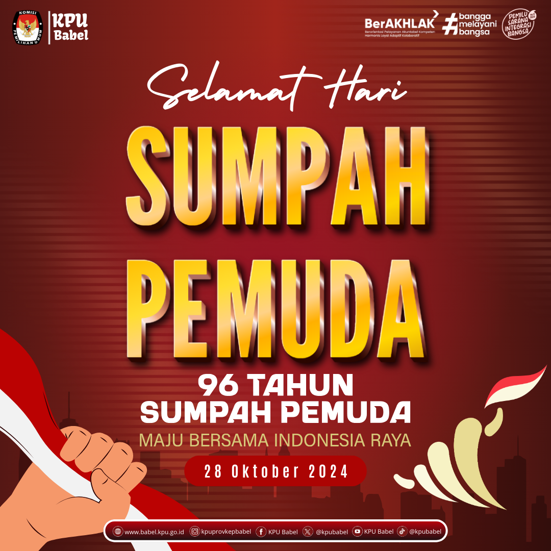 Segenap keluarga besar KPU Provinsi Kepulauan Bangka Belitung mengucapkan Selamat Memperingati Hari Sumpah Pemuda Tahun 2024.