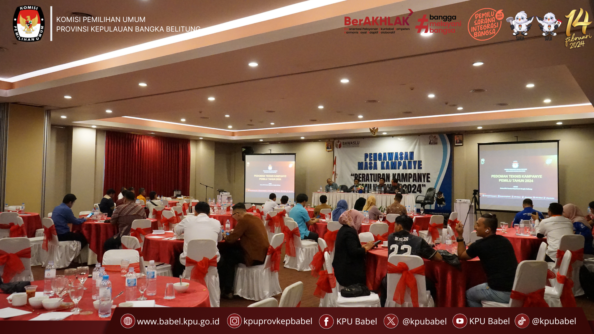 #SeperadikPemilih, Memasuki tahapan kampanye pemilu tahun 2024, seluruh penyelenggara diimbau harus bekerja ekstra dan selalu fokus serta dengan penuh tanggung jawab. Husin, Ketua KPU Provinsi Kepulauan Bangka Belitung menjadi narasumber pada kegiatan "Pengawasan Masa Kampanye : Peraturan Kampanye Pemilu Tahun 2024" yang diselenggarakan Bawaslu Provinsi Kepulauan Bangka Belitung, di Cordela Hotel Pangkalpinang, Selasa (28/11).