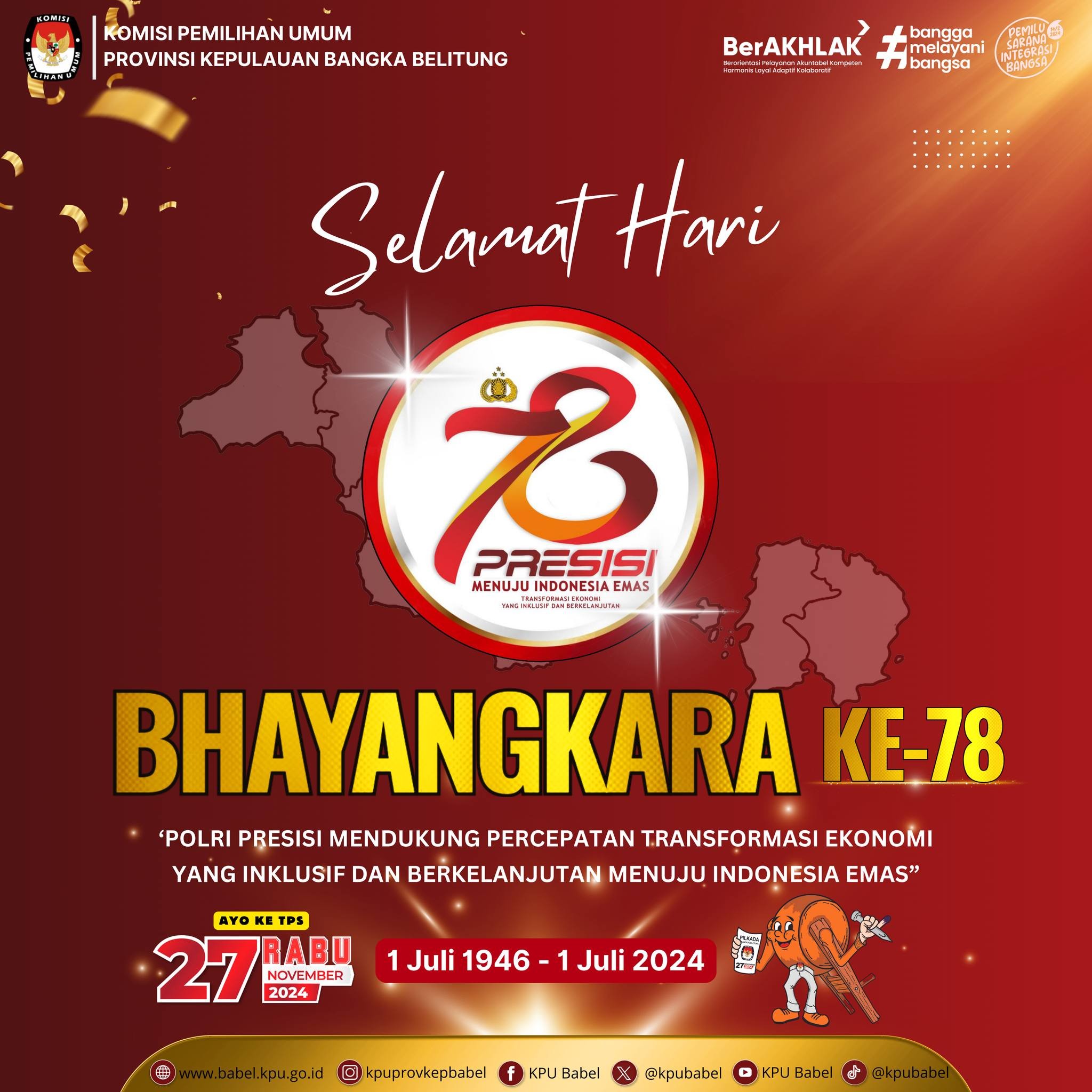 #SeperadikPemilih KPU Provinsi Kepulauan Bangka Belitung mengucapkan Selamat Hari Bhayangkara ke-78.
