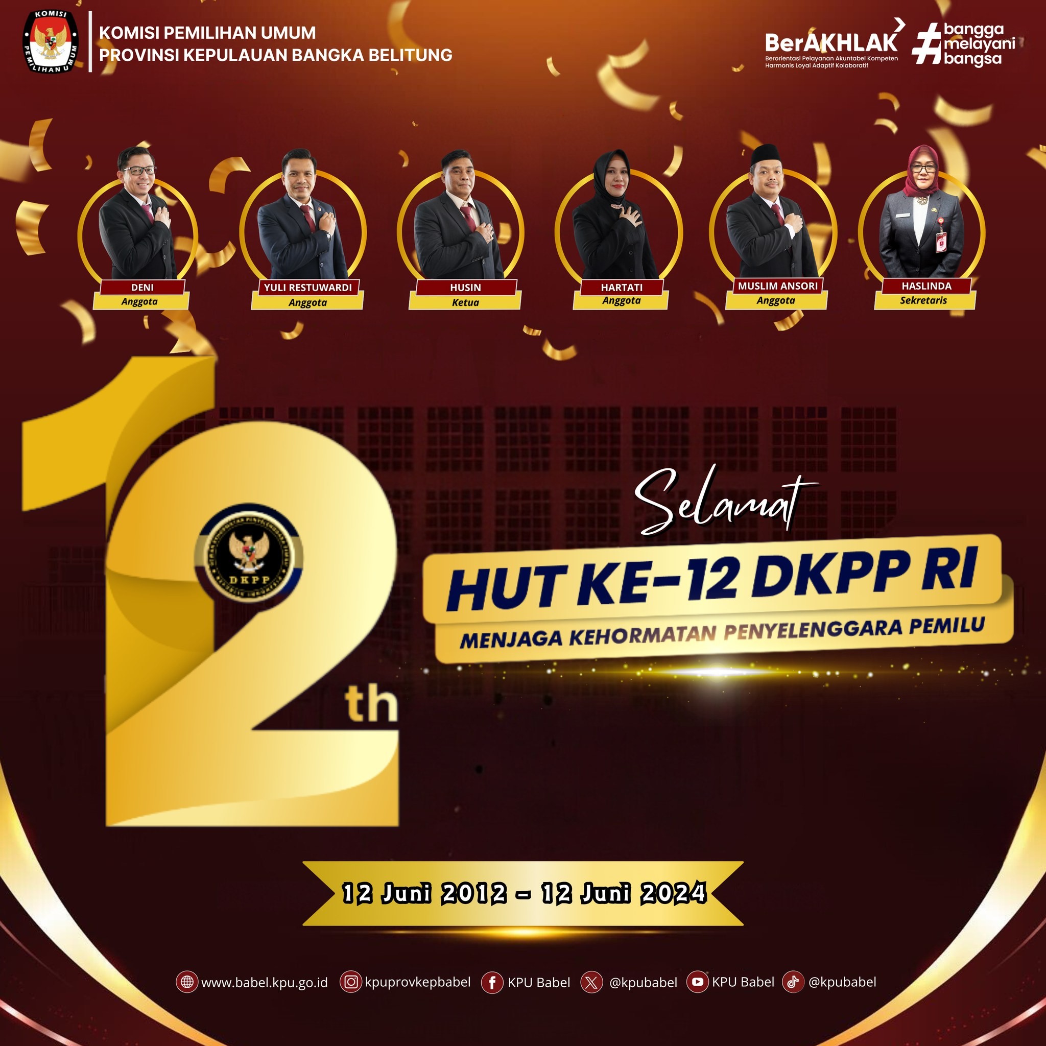 #SeperadikPemilih segenap jajaran KPU Provinsi Kepulauan bangka Belitung mengucapkan Selamat Ulang Tahun ke-12 Dewan Kehormatan Penyelenggara Pemilu (DKPP).