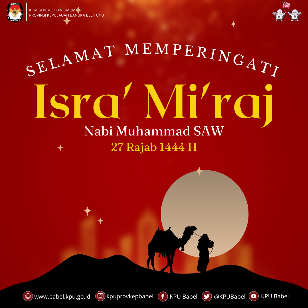 #SeperadikPemilih, Selamat Hari Isra Miraj 1444 H. Mari kita jadikan peristiwa Isra' Mi'raj sebagai momentum dalam kehidupan untuk tetap tawadu dan bertakwa kepada Allah SWT dan Semoga syafa'at Rasulullah SAW selalu menyertai perjalanan hidup kita di dunia. Aamiin Ya Rabbal Alamiin.