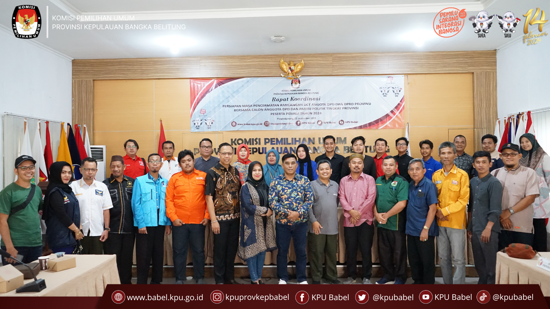 Rakor dihadiri oleh Anggota KPU Babel, Partai Politik, Bacalon/LO DPD Provinsi Kepulauan Bangka Belitung, dan Bawaslu Babel.