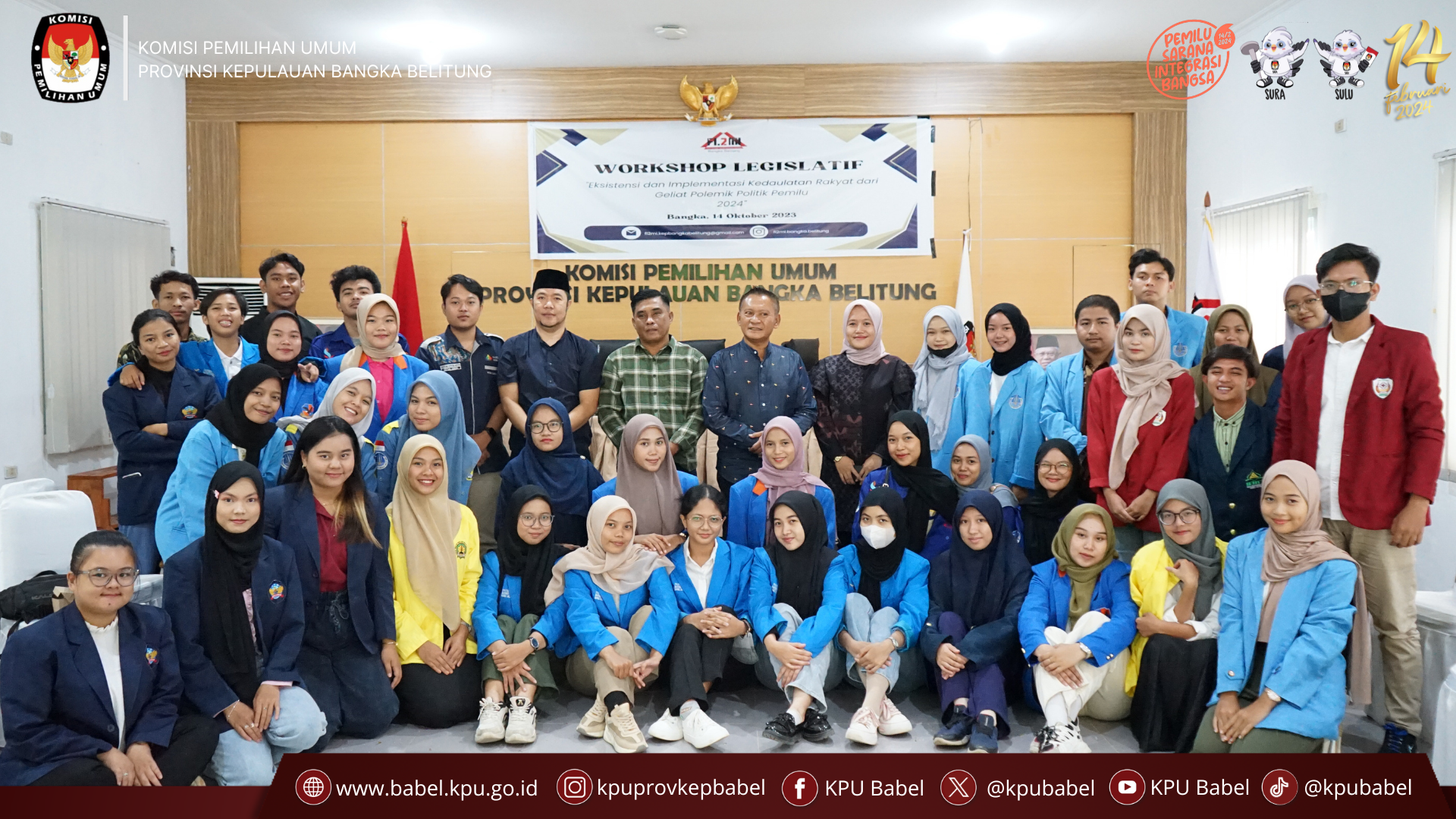 #SeperadikPemilih, Komisi Pemilihan Umum (KPU) Provinsi Kepulauan Bangka Belitung ingin menjadikan pemilu tahun 2024 sebagai sarana integrasi bangsa. Oleh karena itu diharapkan mahasiswa-mahasiswa yang hadir di acara Workshop Legislatif dengan tema "Eksistensi dan Implementasi Kedaulatan Rakyat dari Geliat Polemik Politik Pemilu tahun 2024" yang diselenggarakan oleh Forum Lembaga Legislatif Mahasiswa Indonesia Provinsi Kepulauan Bangka Belitung bertempat di ruang Rapat KPU Babel dapat ikut berpartisipasi mensukseskan pemilu 2024. (14/10)