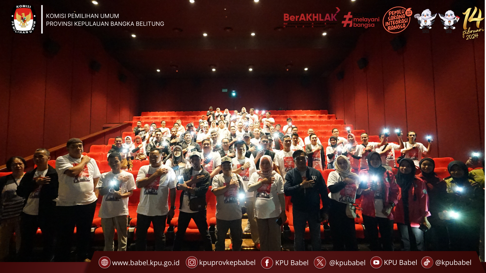 Nobar itu melibatkan Forkopimda, Sekretariat KPU Provinsi Kepulauan Bangka Belitung, Bawaslu, Komisioner dan Anggota KPU Kota/Kabupaten se-Provinsi Kepulauan Bangka Belitung, Mahasiswa dan insan pers.