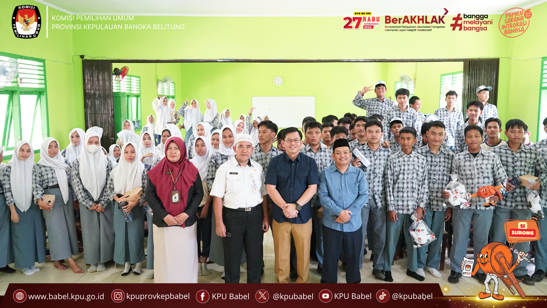 #SeperadikPemilih, KPU Provinsi Kepulauan Bangka Belitung melaksanakan kegiatan sosialisasi dan pendidikan pemilih untuk pemilih pemula di SMAN 1 Merawang. Acara ini bertujuan untuk memberikan pemahaman kepada siswa-siswi mengenai pentingnya partisipasi dalam Pilkada 2024.(31/7)
