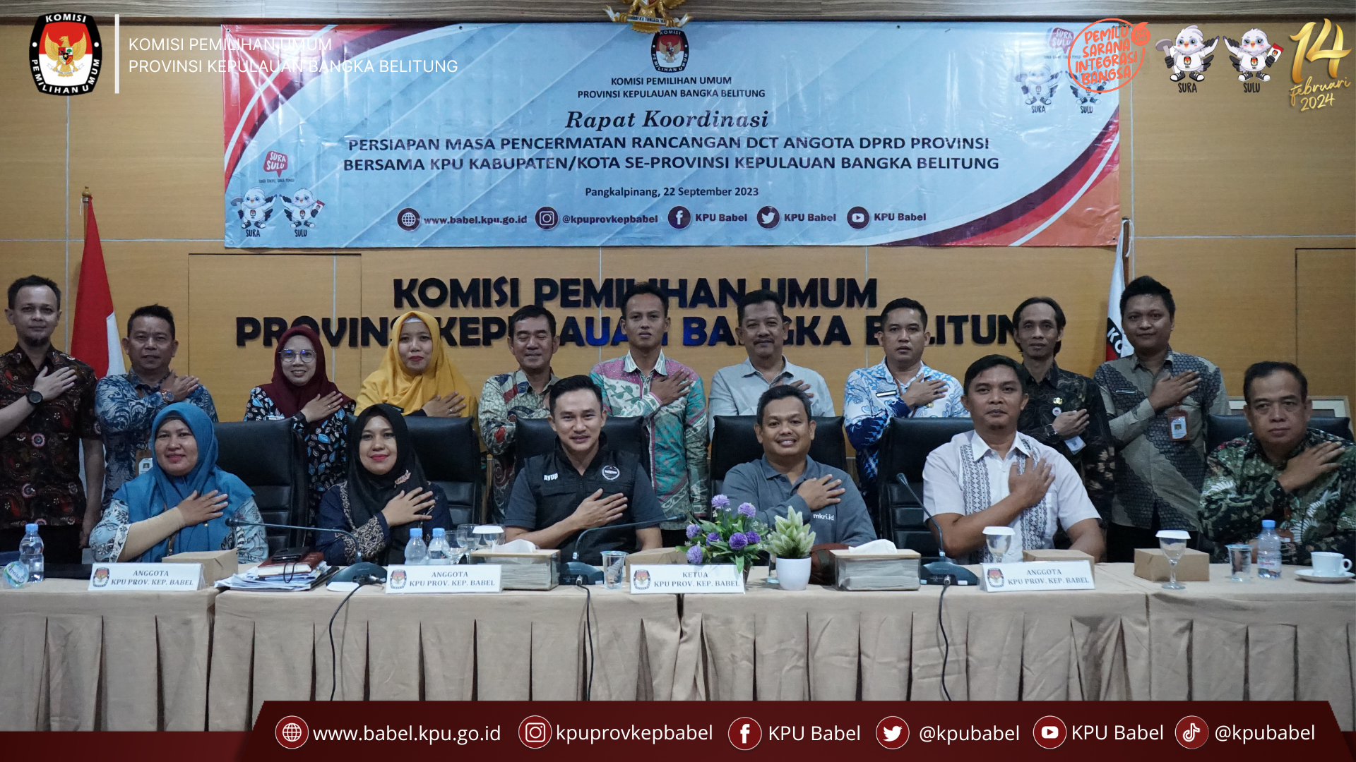 #SeperadikPemilih, KPU Provinsi Kepulauan Bangka Belitung menyelenggarakan Rapat Koordinasi Persiapan Penyusunan dan Pencermatan DCT Anggota DPRD Kabupaten/Kota Pemilu 2024 pada hari Jumat tanggal 22 September 2023 di Ruang Rapat KPU Babel.