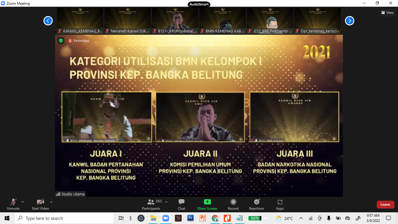 KPU BABEL RAIH PENGHARGAAN KATEGORI UTILISASI BMN DJKN SJB AWARDS 2021