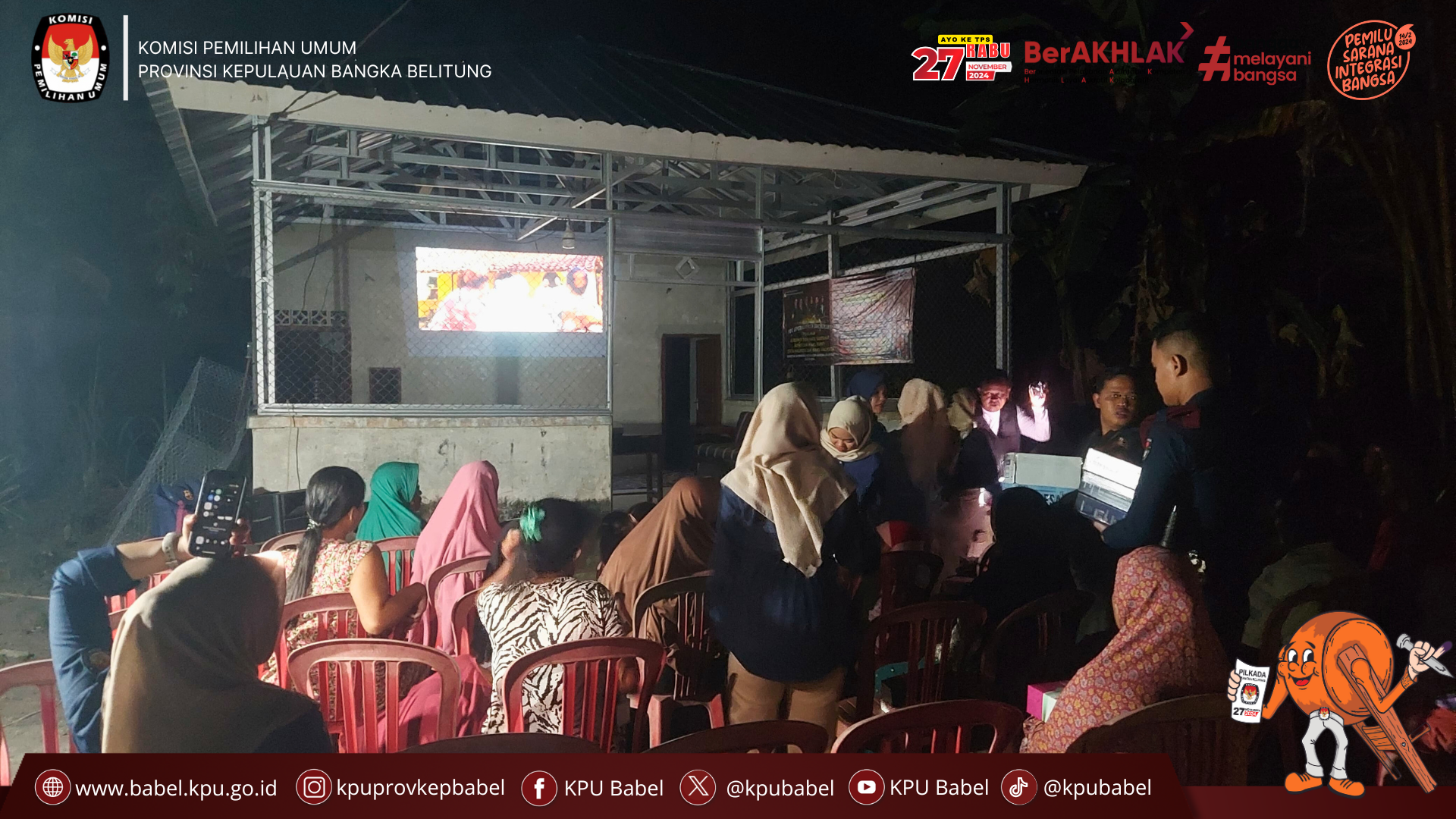 KPU BABEL SOSIALISASIKAN PILKADA 2024 MELALUI NONTON BARENG FILM “TEPATILAH JANJI” DI PULAU NANGKA KABUPATEN BANGKA TENGAH