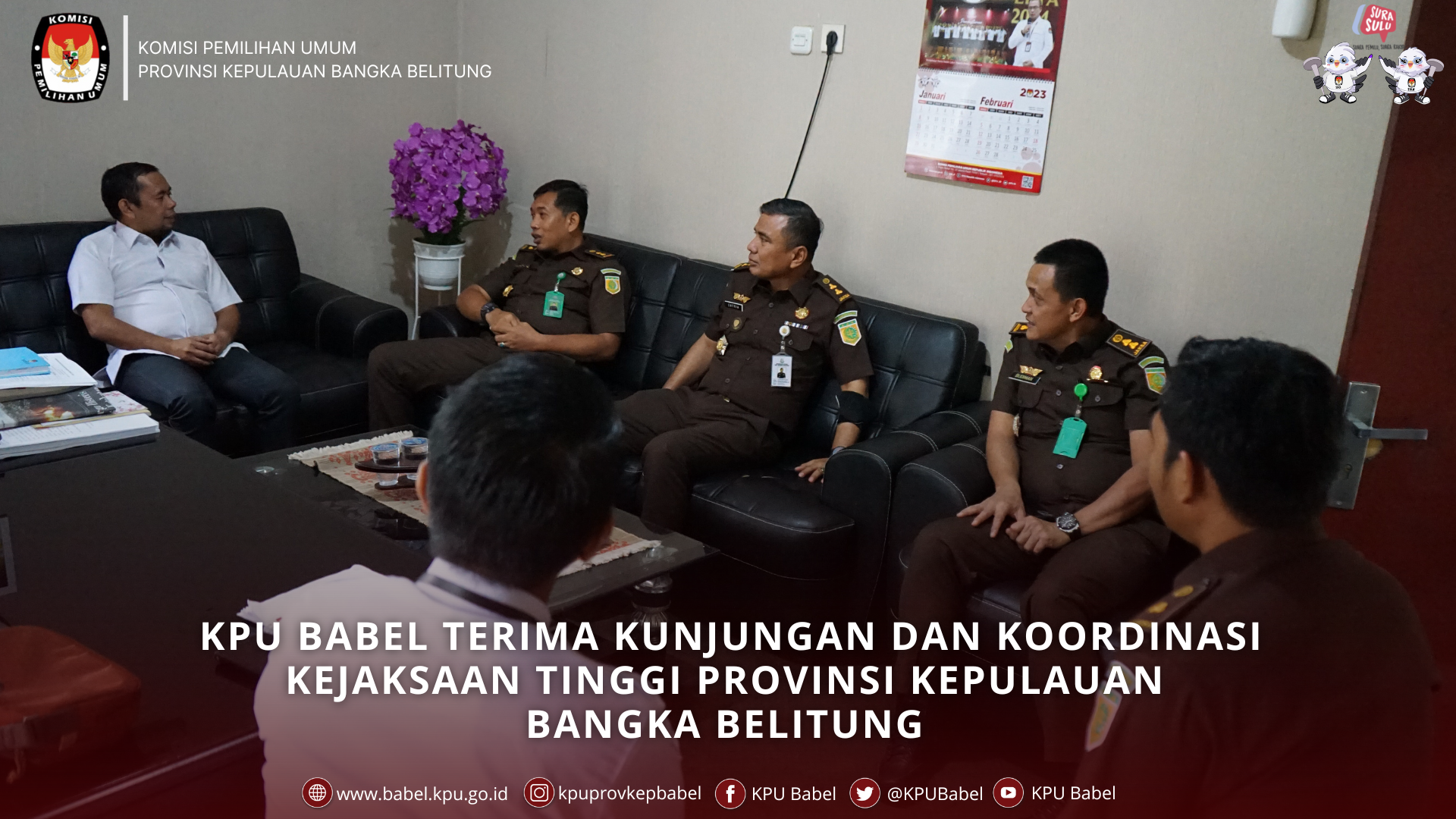 #SeperadikPemilih KPU Provinsi Kepulauan Bangka Belitung menerima kunjungan dan koordinasi terkait Tahapan Pemilu 2024 (Senin, 06 Maret 2023) oleh Kejaksaan Tinggi Kep. Bangka Belitung. Ketua KPU Babel Davitri menyambut baik atas kedatangan Asisten Intelijen Kejati Kep.Bangka Belitung l, Koordinator Bidang Intelijen Kejati Kep.Babel, Kasi A & Kasi E Bidang Intelijen Kejati Kep.Babel