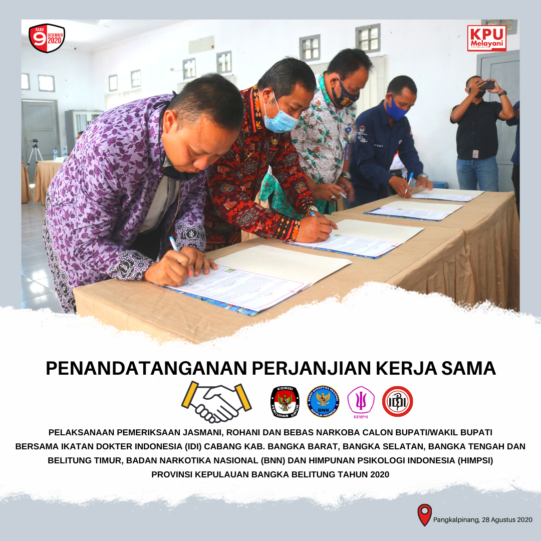 KPU Provinsi Kep. Bangka Belitung Adakan Penandatanganan Perjanjian Kerjasama dengan IDI, BNN dan HIMPSI.