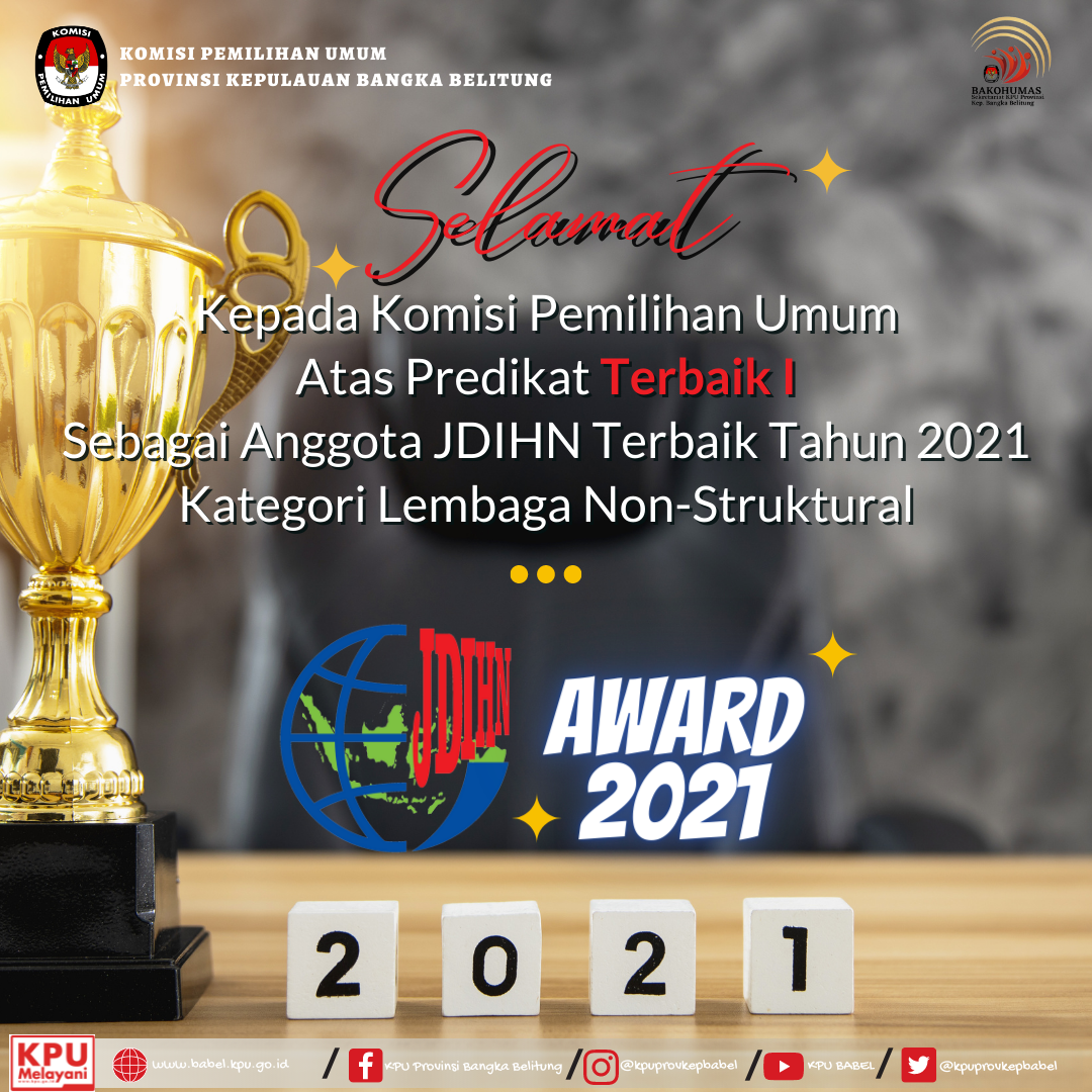 #TemanPemilih , Komisi Pemilihan Umum (KPU) sukses meraih Penghargaan Anggota JDIHN Terbaik I tahun 2021 Kategori Lembaga Non Struktural pada JDIHN Award 2021.