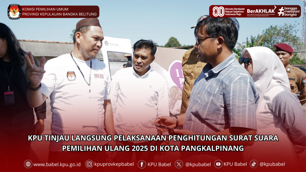 #SeperadikPemilih KPU Provinsi Kepulauan Bangka Belitung mendampingi Anggota KPU RI, Idham Holik, dalam kegiatan monitoring proses penghitungan surat suara pada pelaksanaan Pemilihan Ulang di Kota Pangkalpinang, Rabu (27/08/2025).