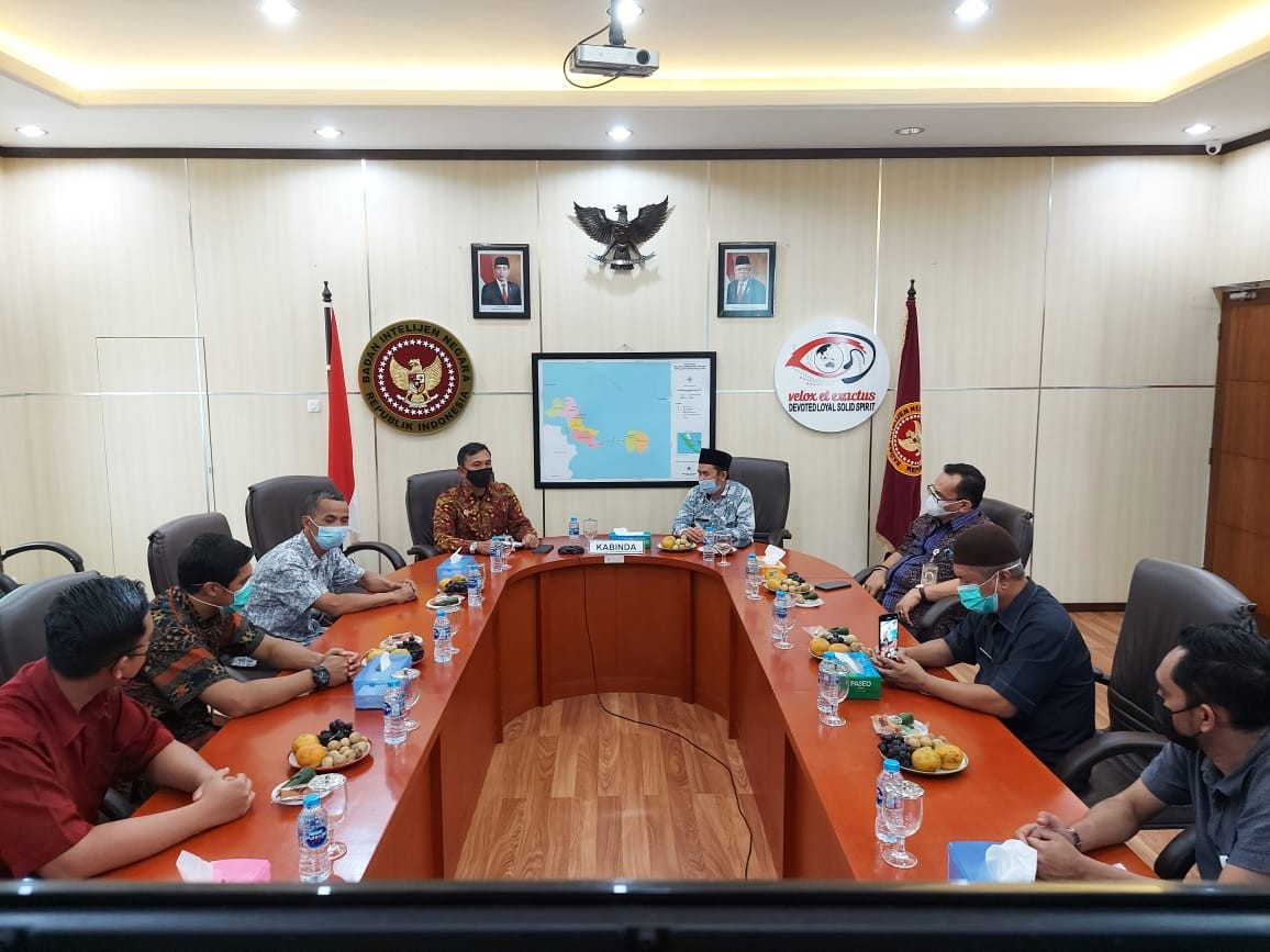 Sama seperti kunjungan pada Lembaga sebelumnya, Davitri (Ketua KPU) menyampaikan hasil pelaksanaan tahapan pemilihan Bupati dan Wakil Bupati Tahun 2020, beliau mengatakan pemilihan 2020 yang lalu berjalan aman, lancar dan sukses. "alhamdulillah pada pemilihan 2020, dari 4 Kabupaten tidak ada yang bersengketa dan tidak ada yang sampai ke Mahkamah Konstitusi", imbuh Davitri.