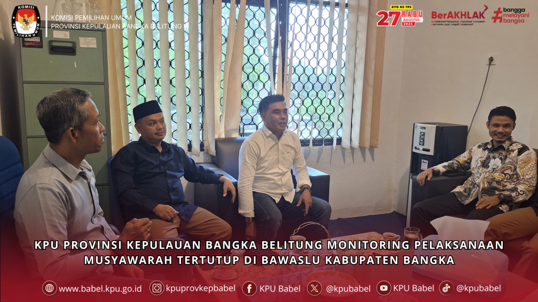 #SeperadikPemilih Ketua KPU Provinsi Kepulauan Bangka Belitung, Husin, bersama Anggota KPU Muslim Ansori dan Kabag Teknis Penyelenggaraan Pemilu dan Hukum, Saharullah, melakukan monitoring terhadap pelaksanaan Musyawarah Tertutup yang digelar oleh Bawaslu Kabupaten Bangka.