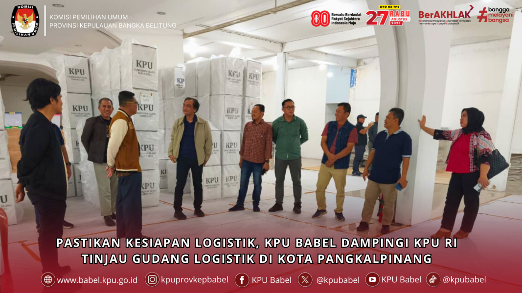 #SeperadikPemilih KPU Provinsi Kepulauan Bangka Belitung melakukan kunjungan ke Gudang Logistik KPU Kota Pangkalpinang pada Senin, 25 Agustus 2025. Kunjungan ini dilaksanakan dalam rangka monitoring kesiapan logistik surat suara dan kotak suara menjelang H-2 pemungutan suara Pemilihan Ulang Tahun 2025 yang akan digelar pada Rabu, 27 Agustus 2025. (25/8)