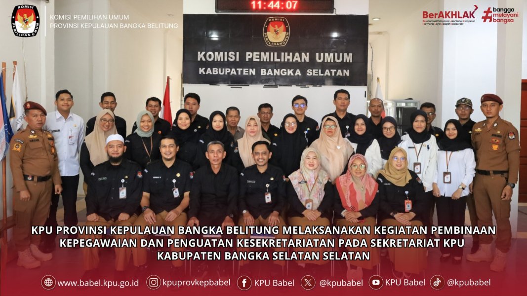 #SeperadikPemilih KPU Provinsi Kepulauan Bangka Belitung melakukan kunjungan ke KPU Kabupaten Bangka Selatan dalam rangka kegiatan Pembinaan Kepegawaian dan Penguatan Kesekretariatan pada Rabu 16 Juli 2025, bertempat di Aula KPU Kabupaten Bangka Selatan.