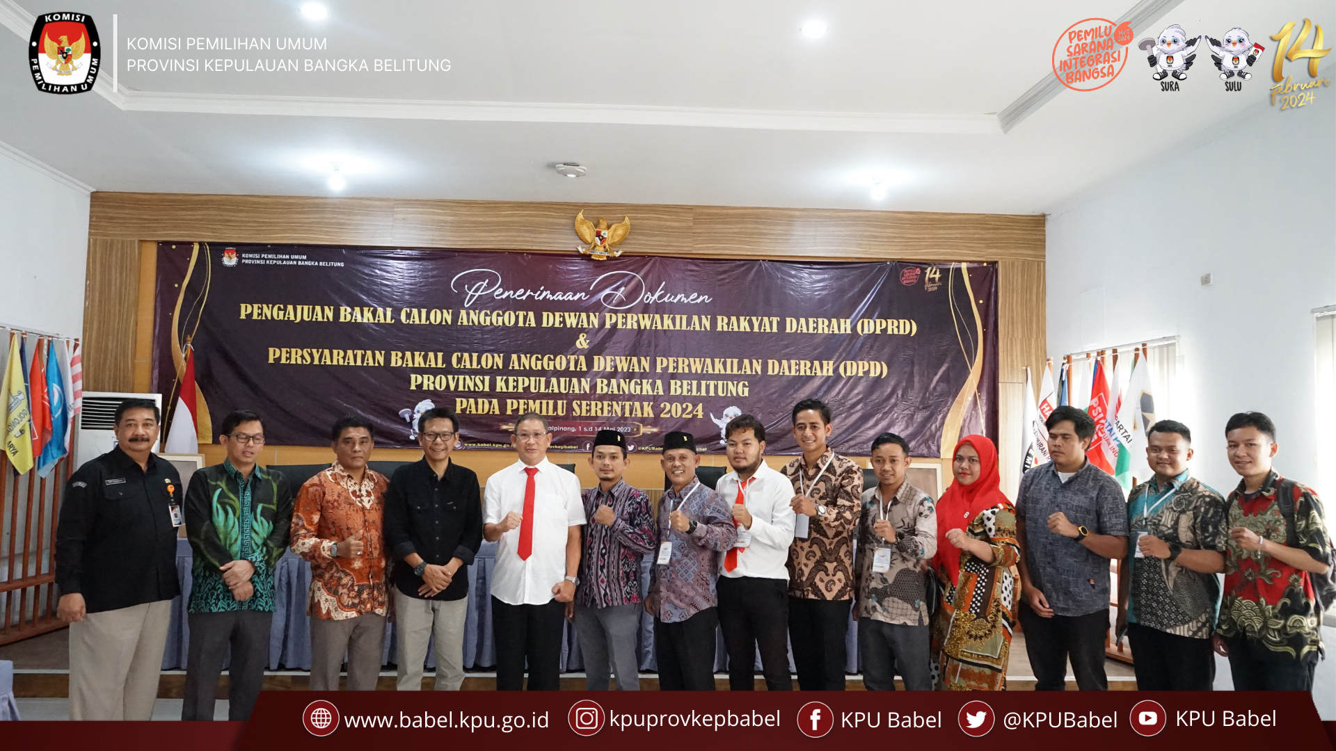 Pangkalpinang, babel.kpu.go.id - #SeperadikPemilih KPU Provinsi Kepulauan Bangka Belitung menerima Dokumen Pendaftaran Persyaratan Bakal Calon Anggota Dewan Perwakilan Daerah (DPD) Pemilu 2024 atas nama Bahar Buasan bertempat di ruang rapat KPU Babel, Rabu (10/5)