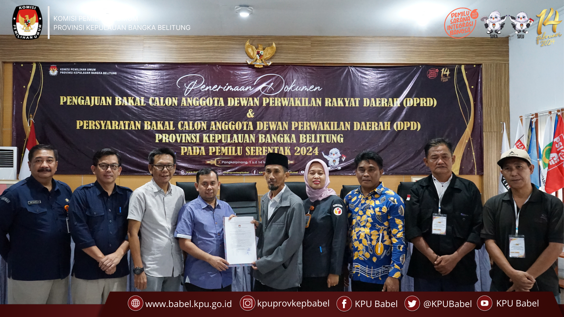 Pangkalpinang, babel.kpu.go.id - #SeperadikPemilih KPU Provinsi Kepulauan Bangka Belitung menerima Dokumen Pendaftaran Persyaratan Bakal Calon Anggota Dewan Perwakilan Daerah (DPD) Pemilu 2024 atas nama Rusdiyanto bertempat di ruang rapat KPU Babel, Selasa (9/5)