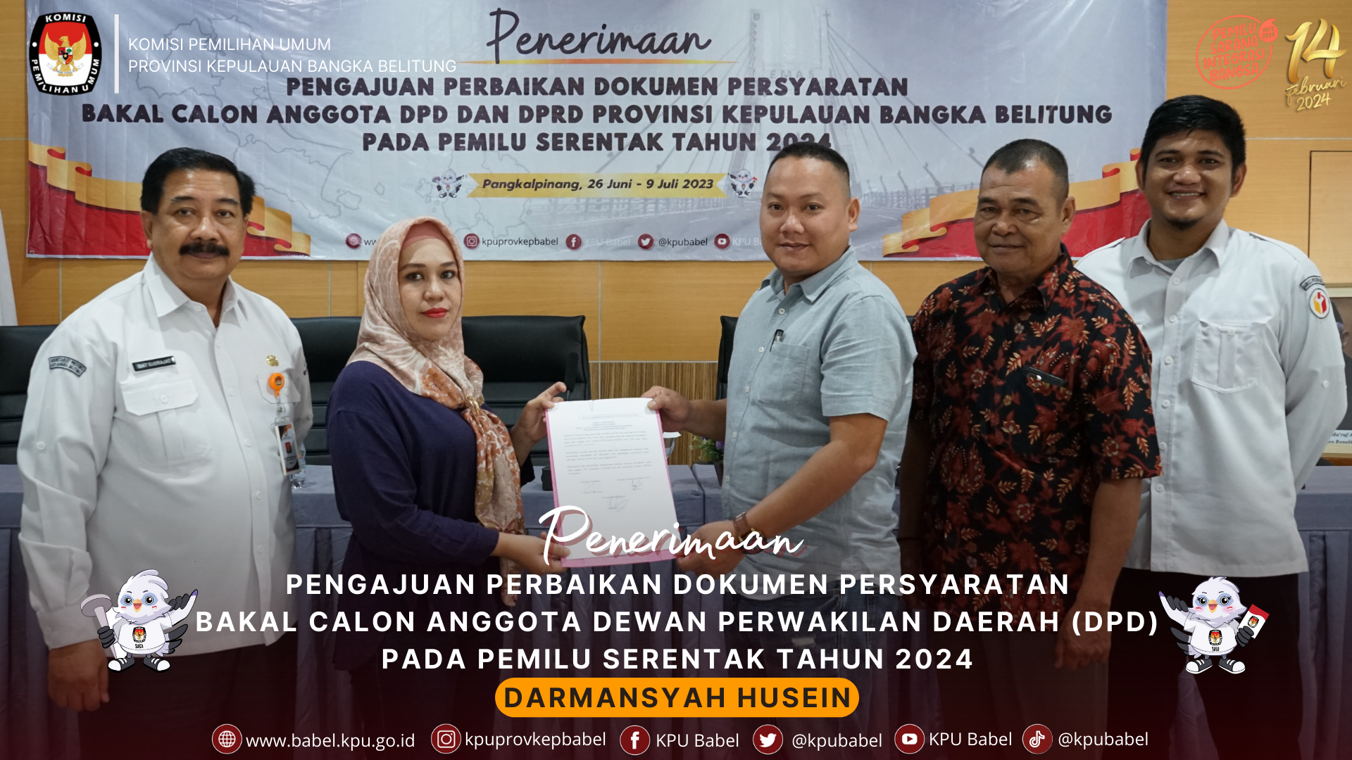 PENERIMAAN PENGAJUAN PERBAIKAN DOKUMEN BAKAL CALON DPD DARMANSYAH HUSEIN