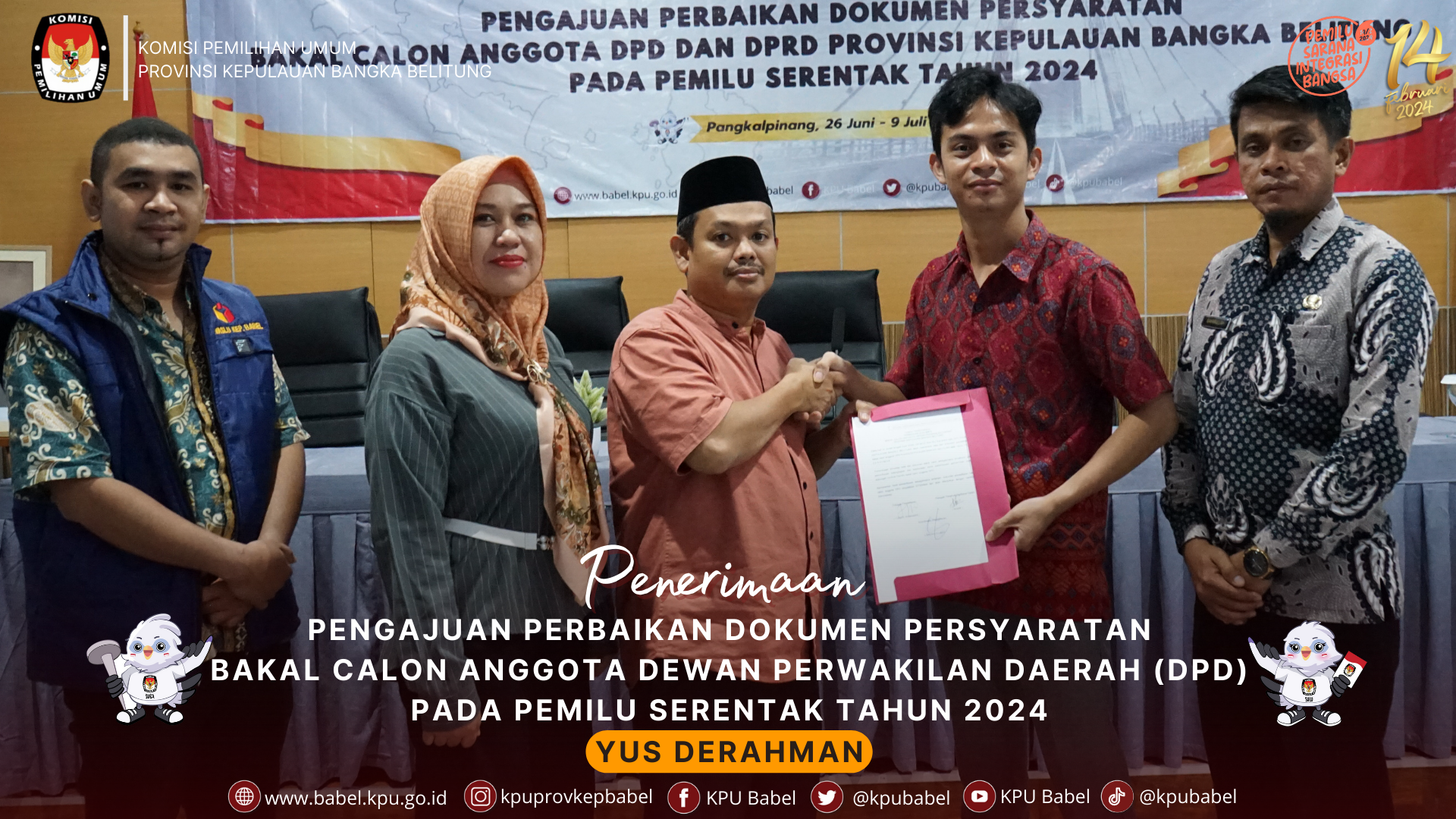 PENERIMAAN PENGAJUAN PERBAIKAN DOKUMEN BAKAL CALON DPD YUS DERAHMAN