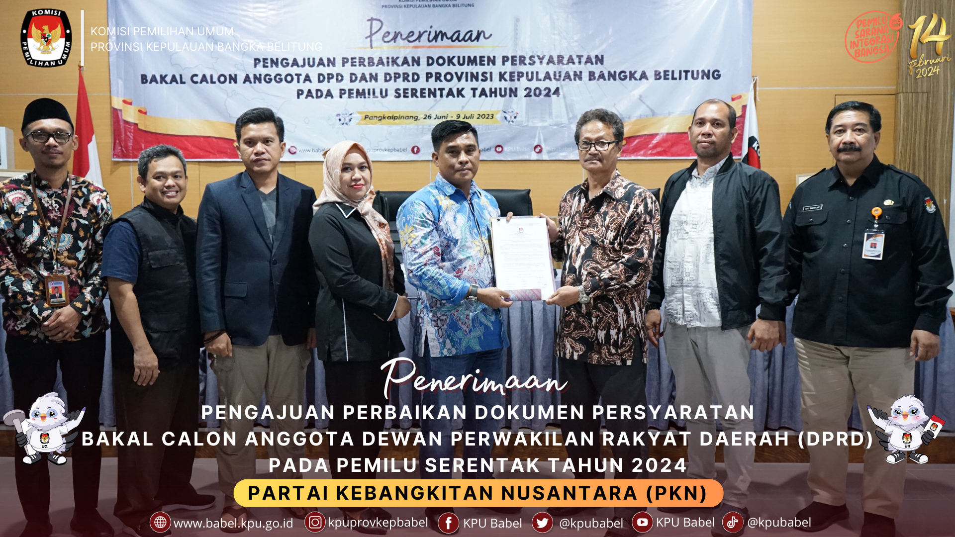 Penyerahan dilakukan oleh LO Partai Politik dan diterima oleh Ketua & Anggota KPU Babel.