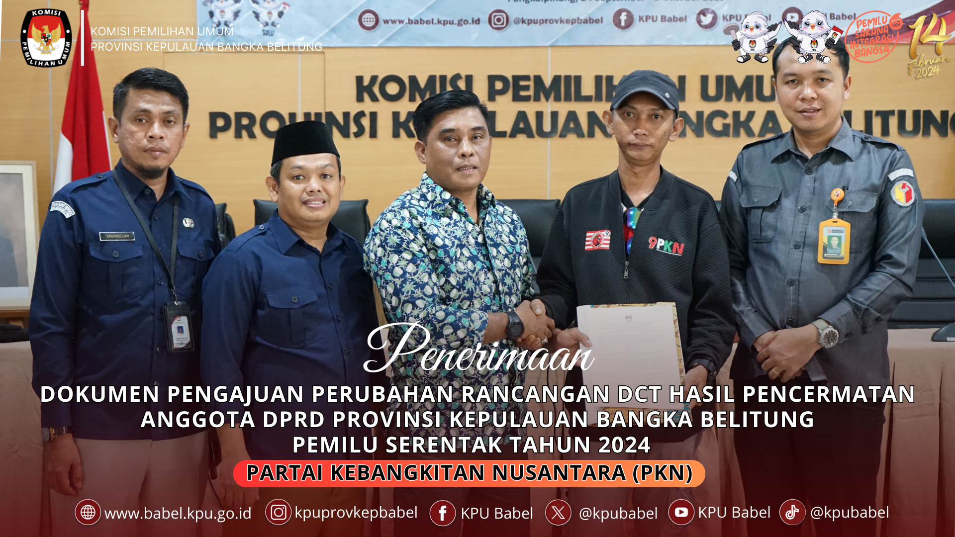 Pangkalpinang, babel.kpu.go.id - #SeperadikPemilih KPU Provinsi Kepulauan Bangka Belitung menerima Dokumen Pengajuan Perubahan Rancangan Daftar Calon Tetap (DCT) Hasil Pencermatan Anggota Dewan Perwakilan Rakyat Daerah (DPRD) Pemilu 2024 dari Partai PKN bertempat di ruang rapat KPU Babel, Selasa (3/10)